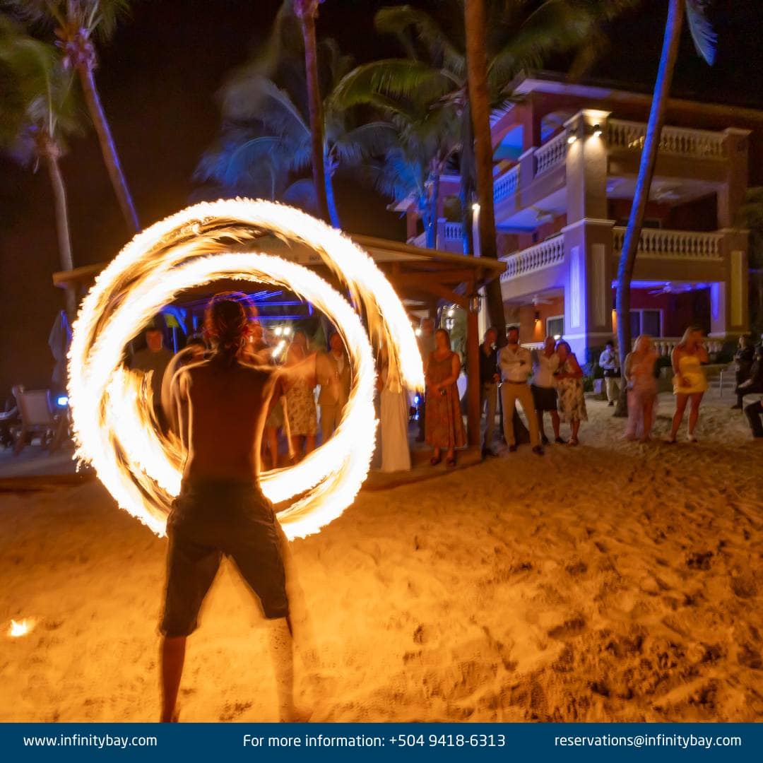 Friday is Family Night at Infinity Bay. Enjoy Roatan Fire Show on the beach just after dark.