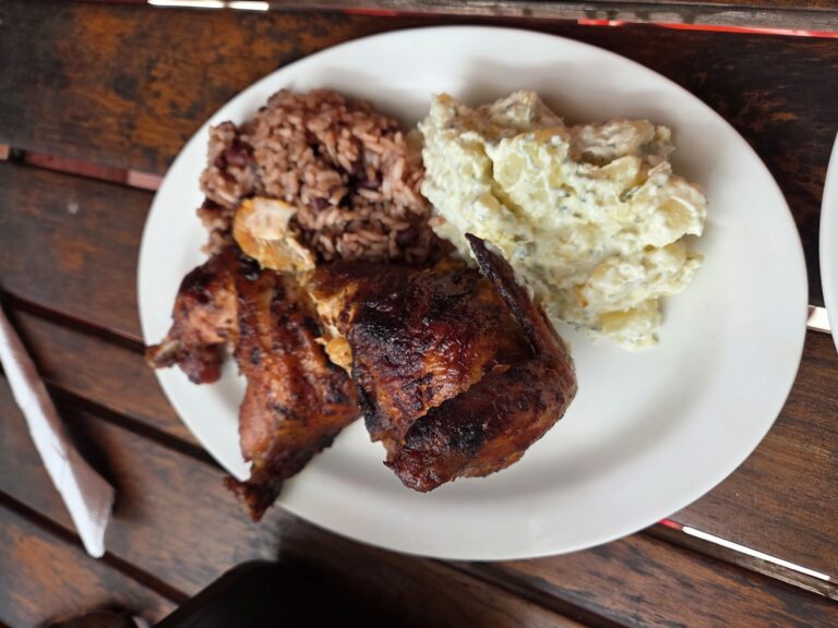 Creoles Rotisserie Chicken is a chicken restaurant on West End Road in Bay Islands, serving breakfast, lunch, and dinner with options for dine-in, takeout, and outdoor seating. The menu includes chicken dishes, small plates, desserts, and beverages such as beer, wine, and coffee. The setting is casual and cozy, with table service, a bar onsite, and amenities like restrooms and parking. It welcomes groups, solo diners, tourists, and families, and is good for kids and dogs. Payment is accepted by credit and debit cards. People usually spend up to 1.5 hours here.