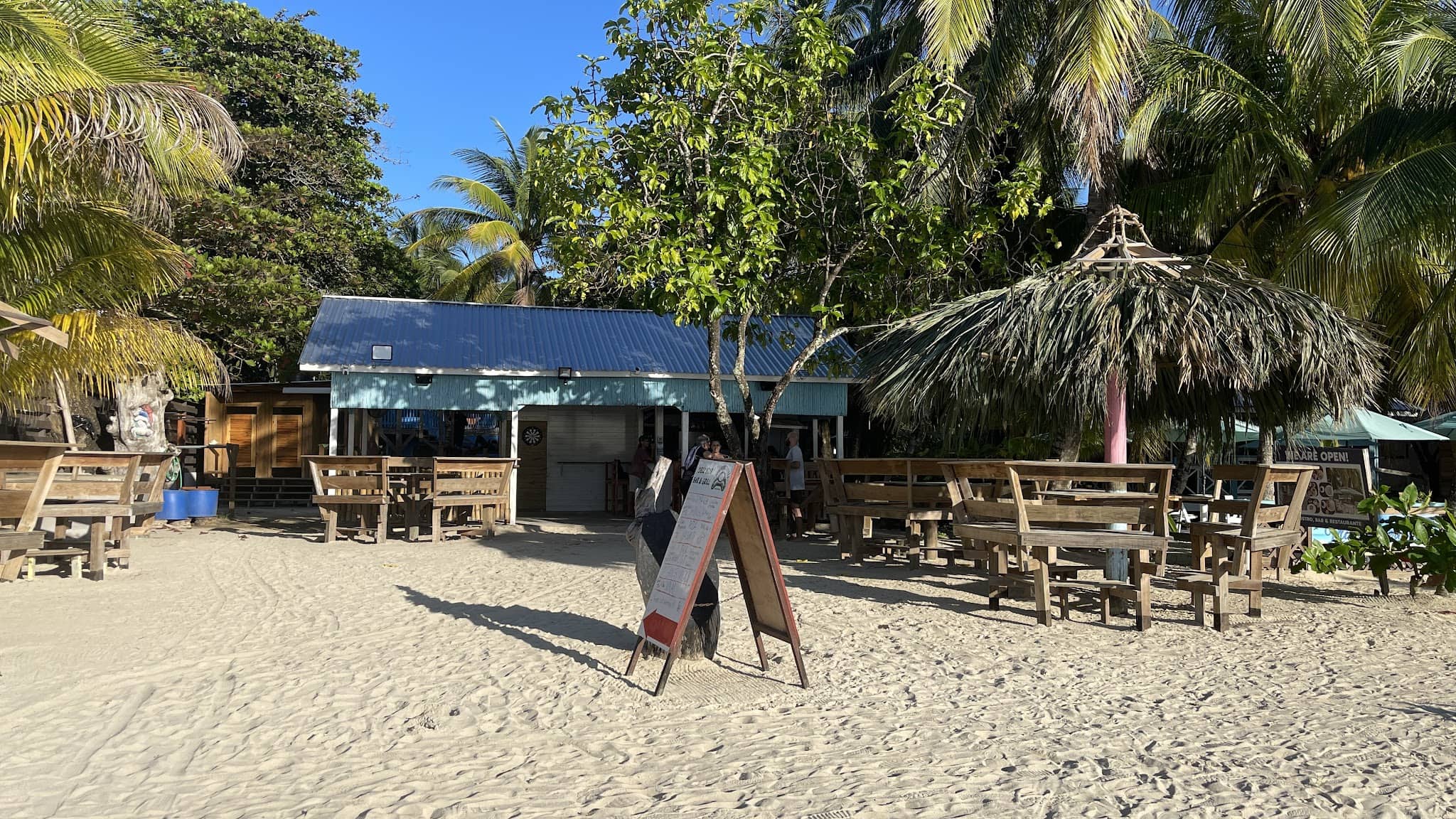 Deco Stop Bar & Grill sits in Roatan as a casual bar with table service, bar games, and a menu of food alongside alcohol, beer, cocktails, and wine. It welcomes groups, tourists, kids, and dogs, with cozy seating, Wi-Fi, gender-neutral restrooms, and free street or paid lot parking. Staff handle dine-in and takeout, and it accepts reservations while operating cash-only. Drop in for drinks and meals in a spot good for relaxed hangs.